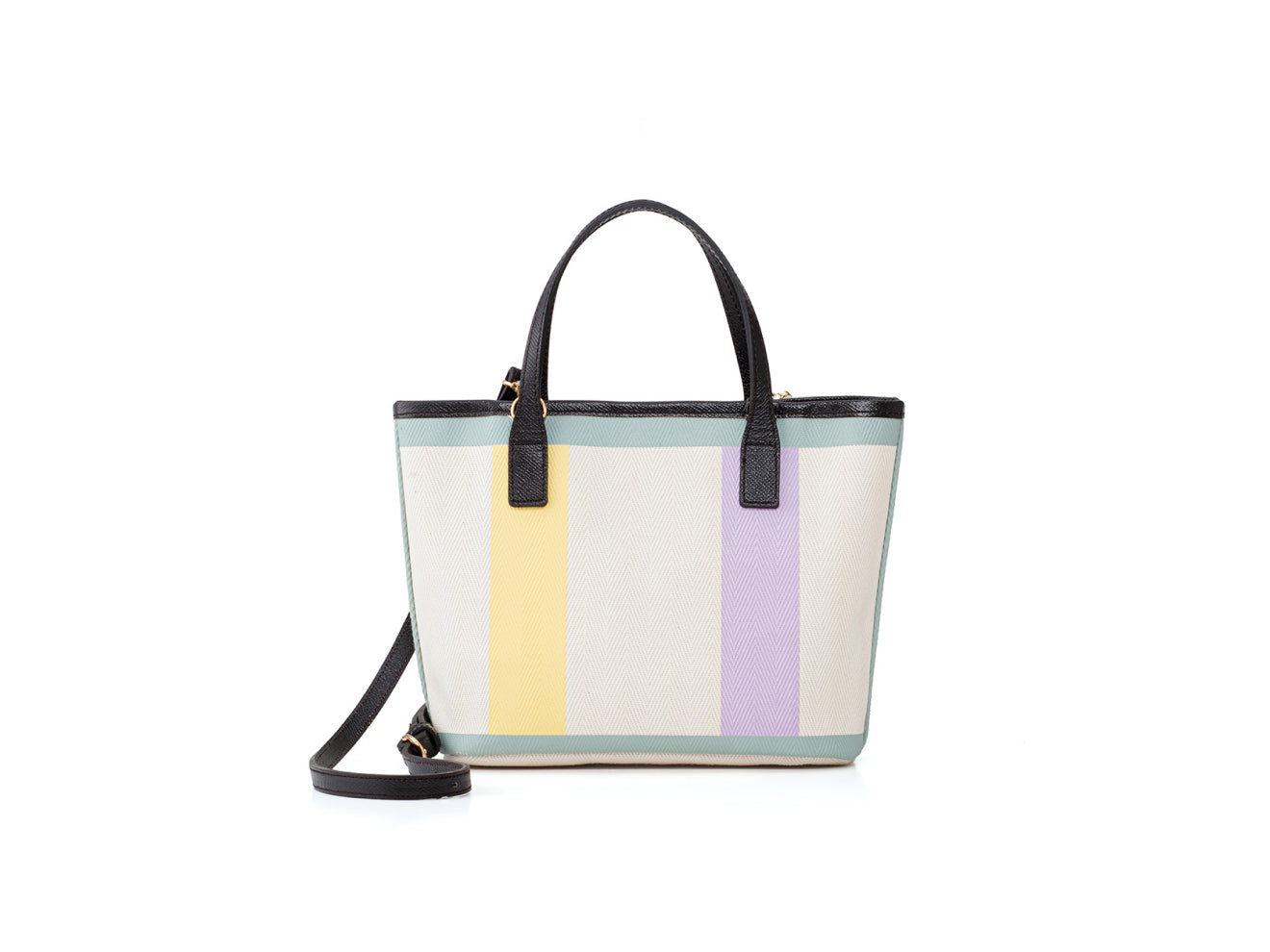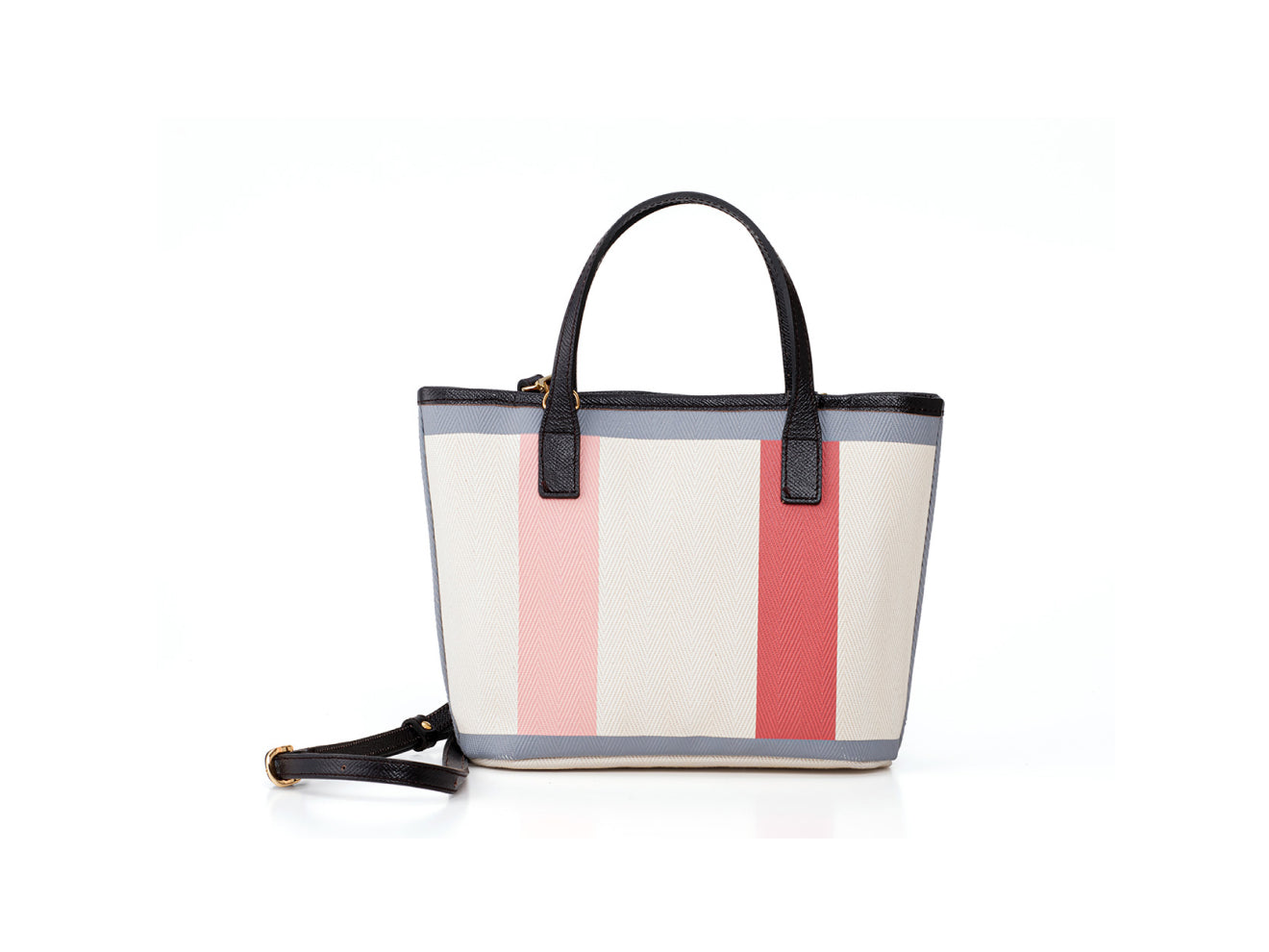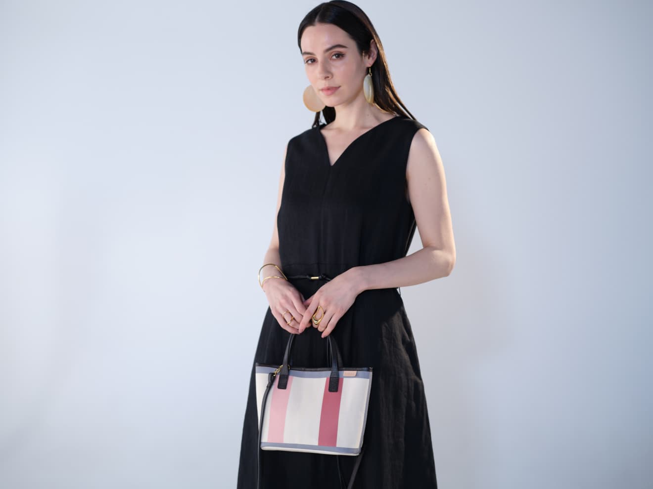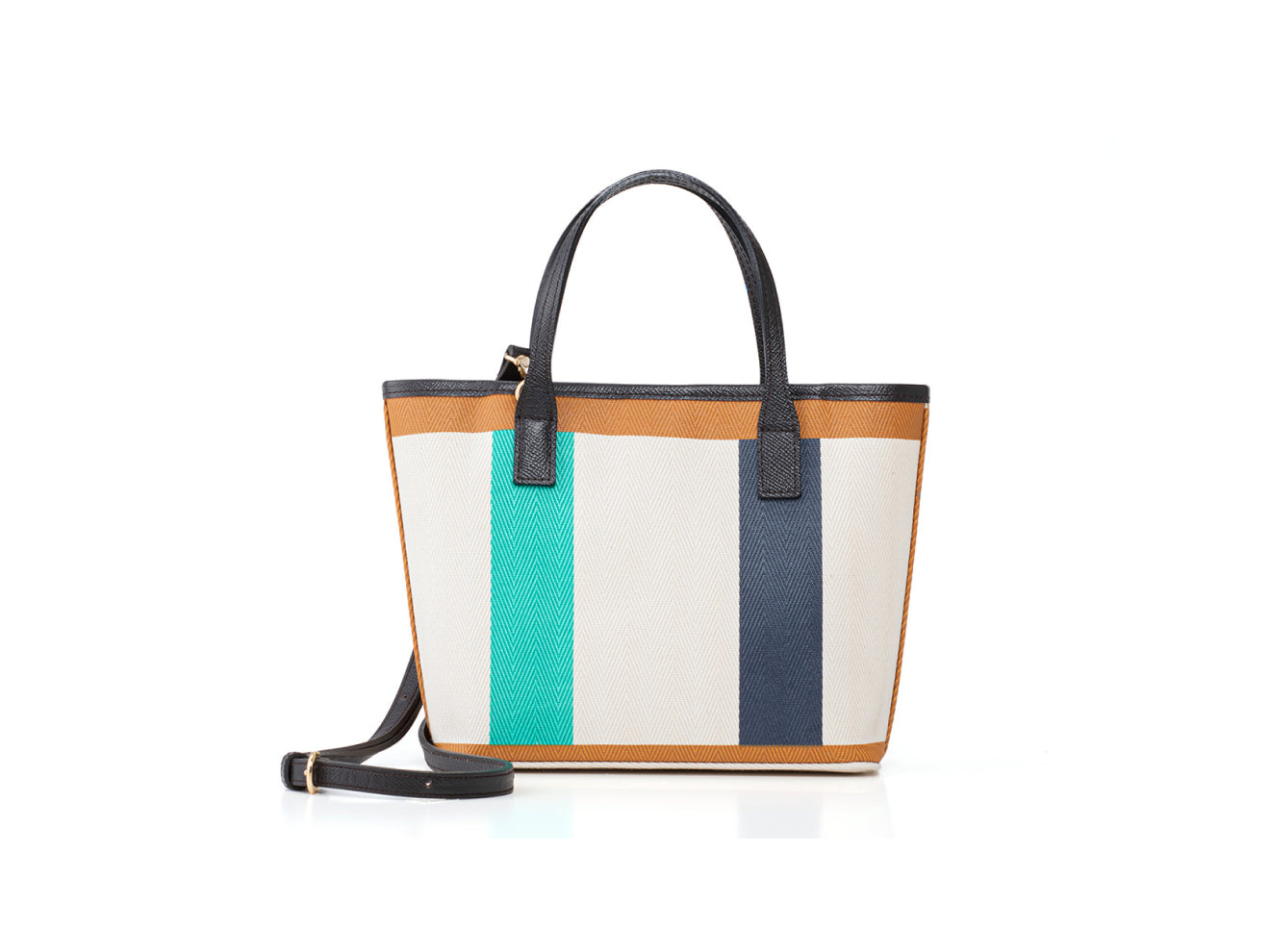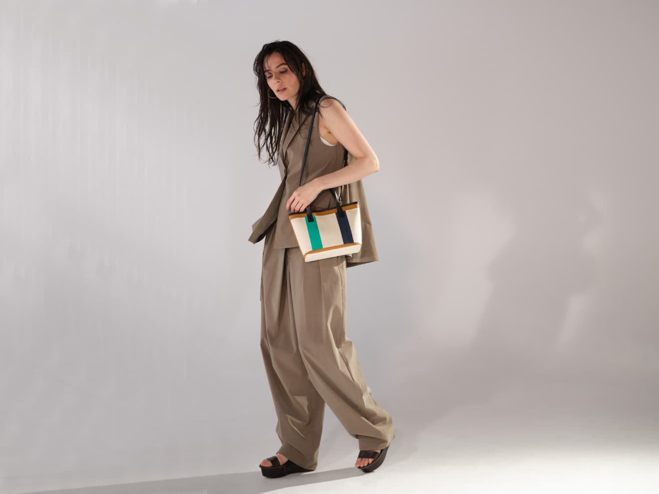 レザーハンドルとパイピングがカジュアルになりがちなキャンバスバッグを大人顔に引き締めています。