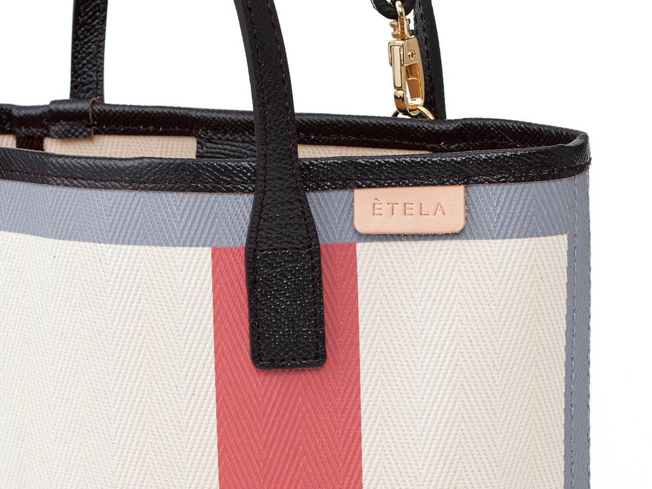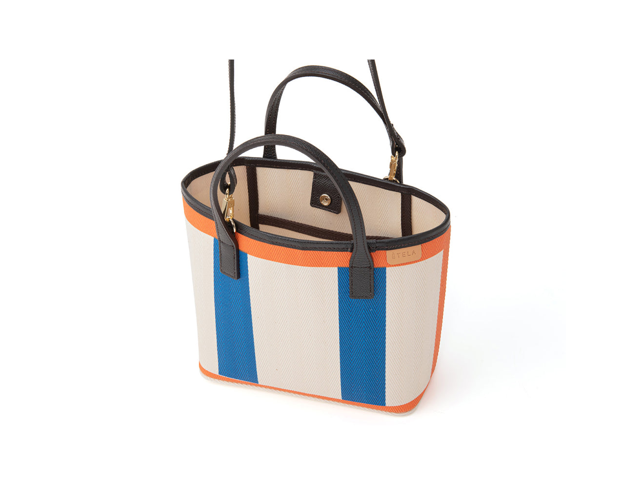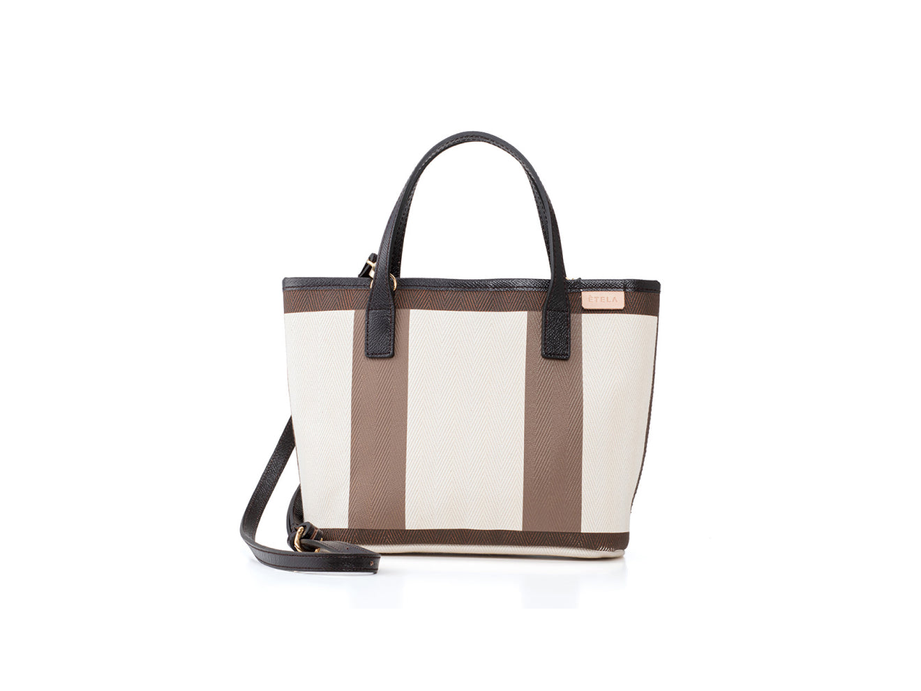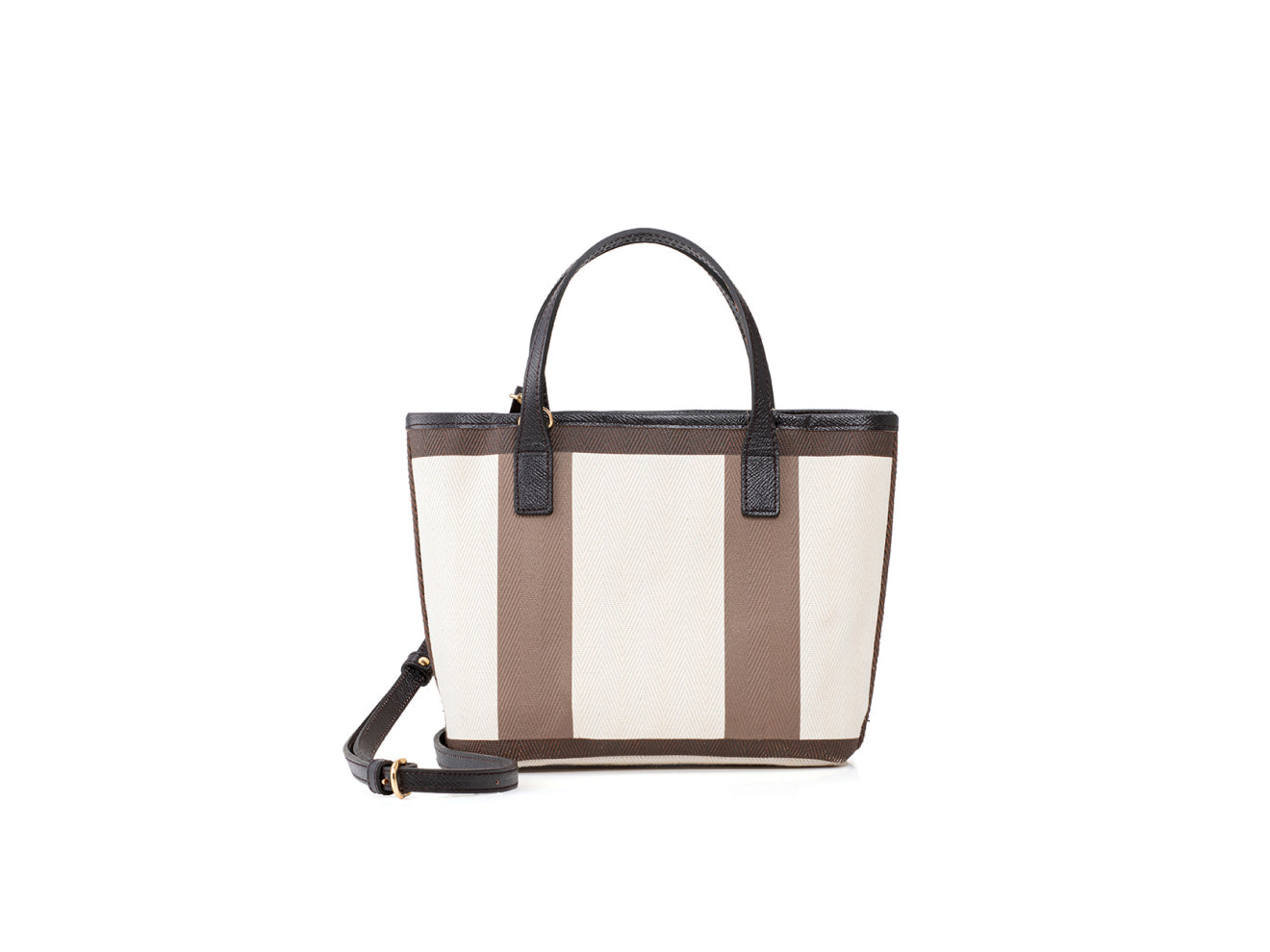 レザーハンドルとパイピングがカジュアルになりがちなキャンバスバッグを大人顔に引き締めています。