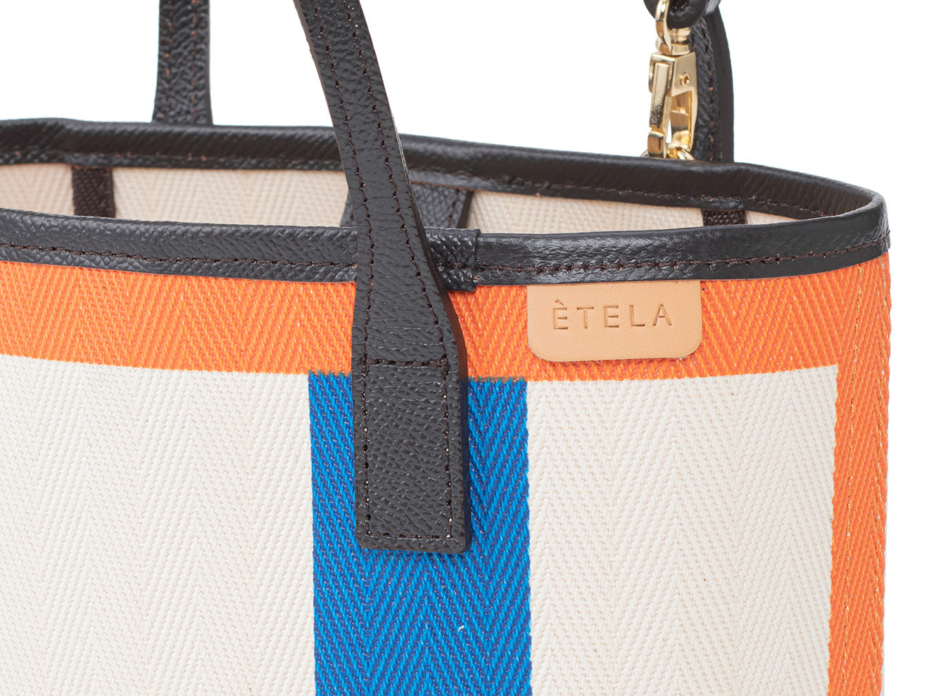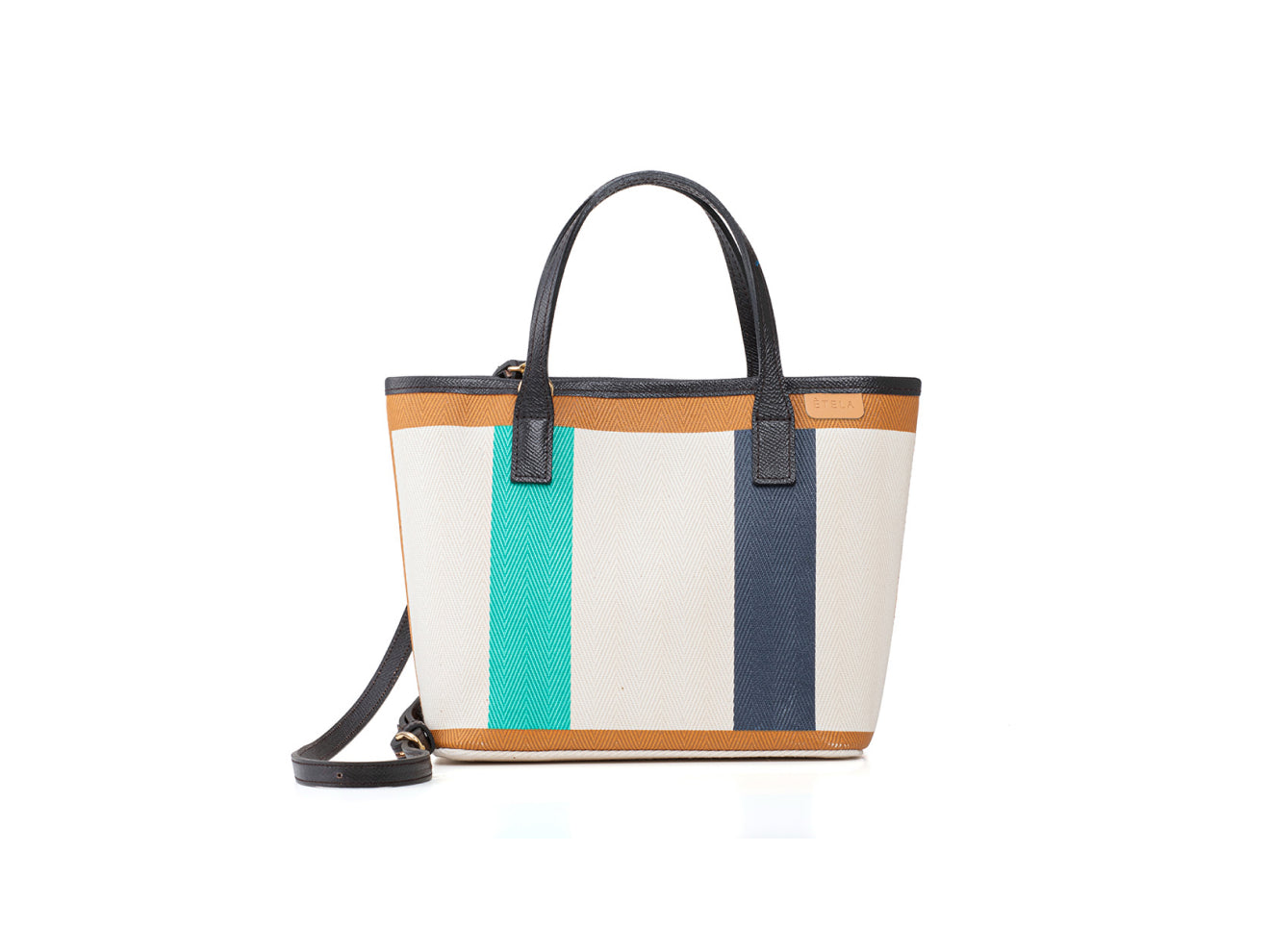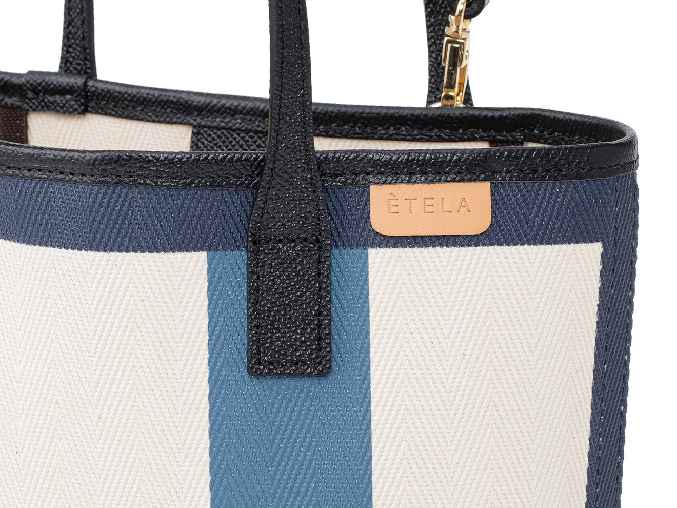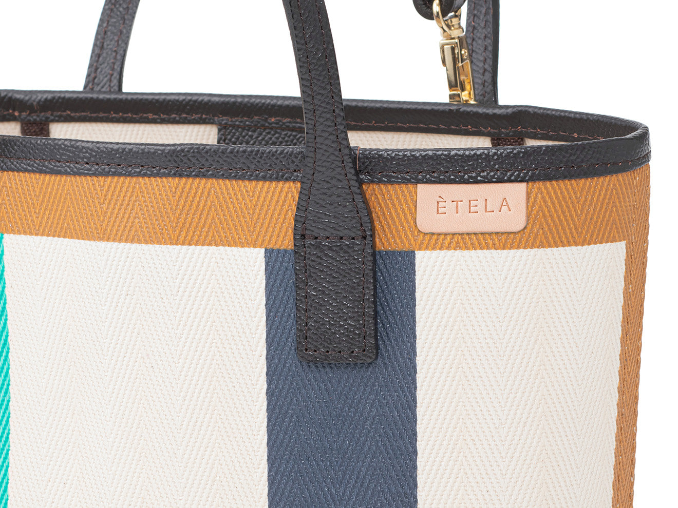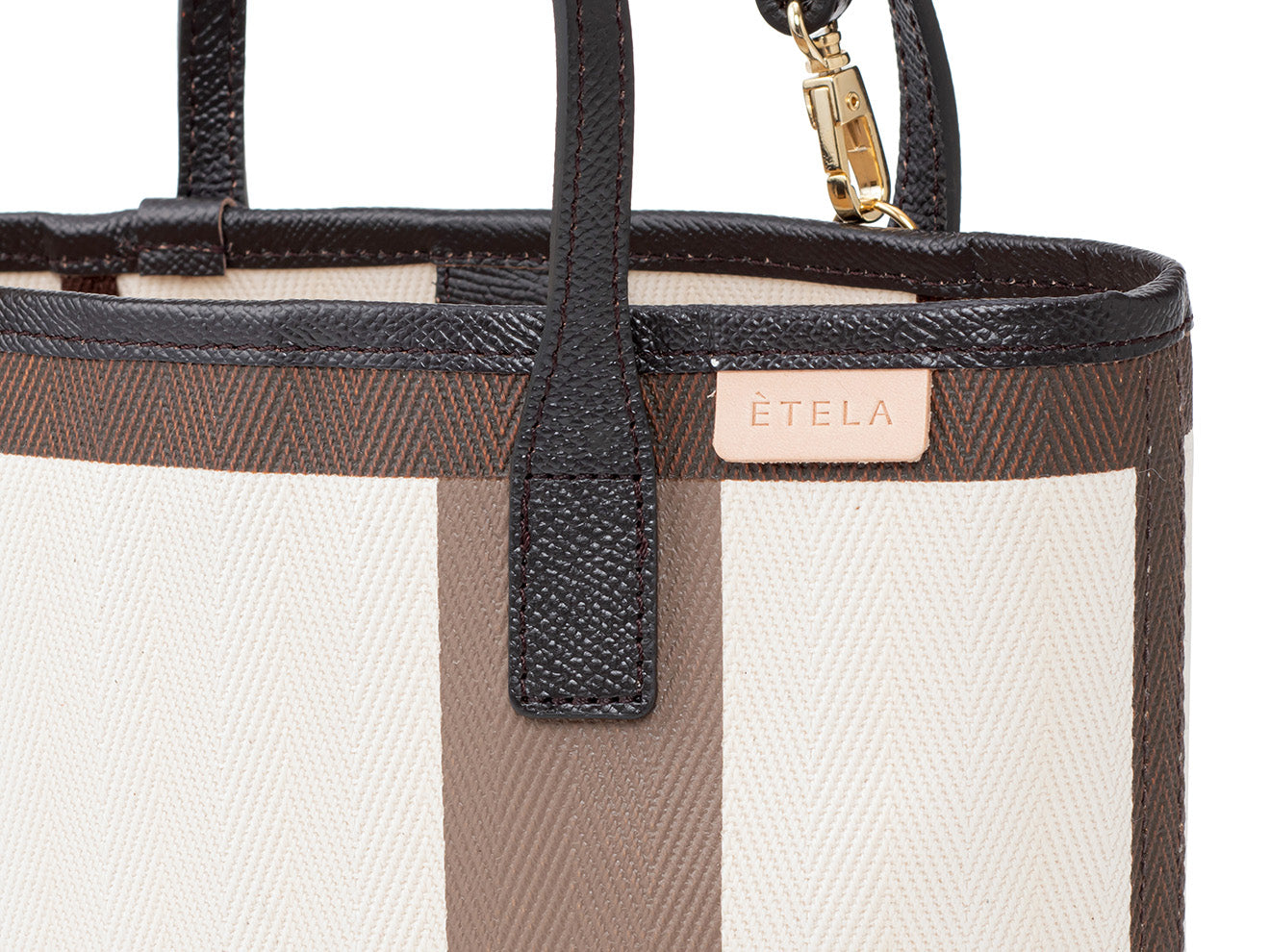 レザーハンドルとパイピングがカジュアルになりがちなキャンバスバッグを大人顔に引き締めています。