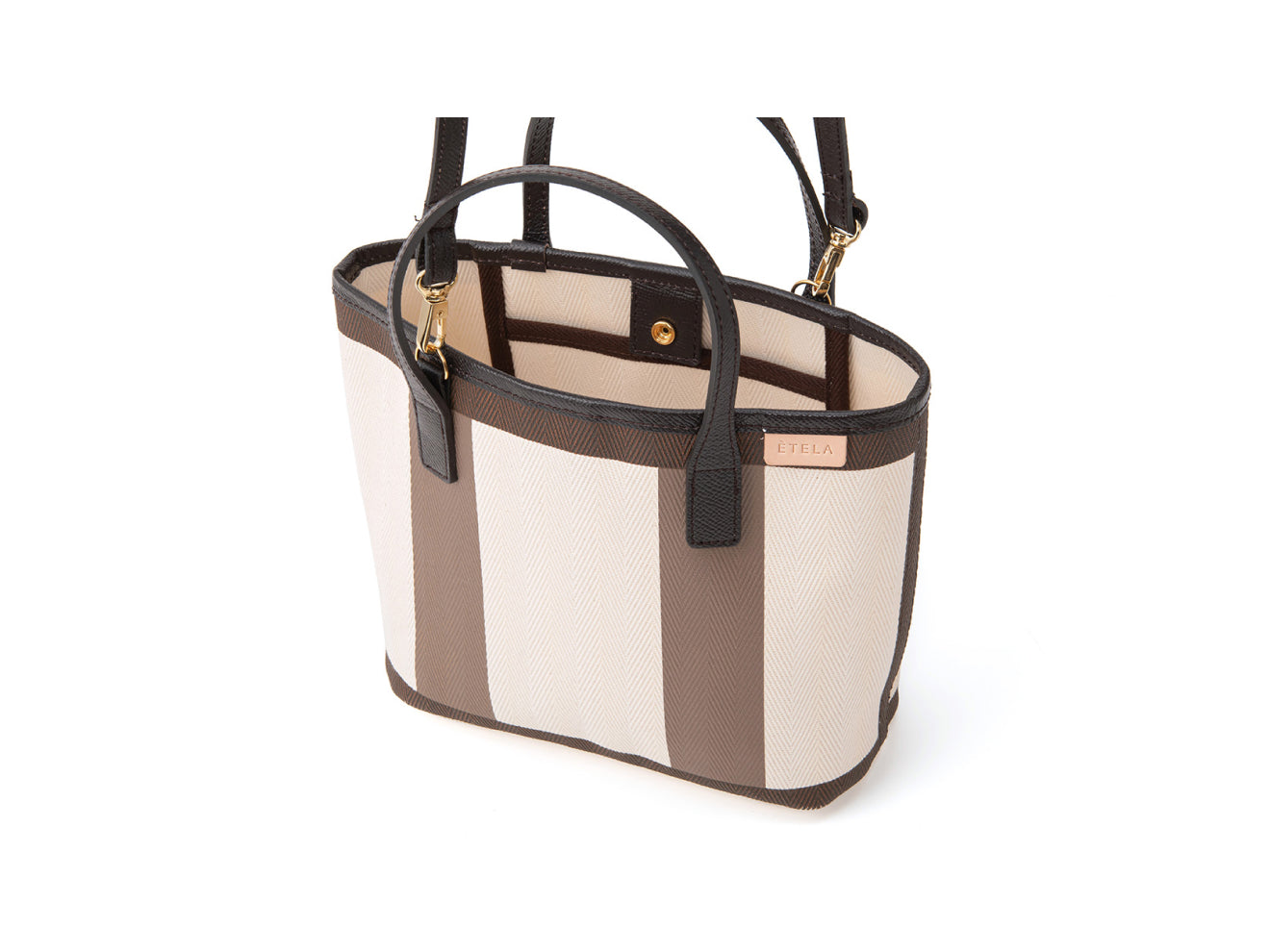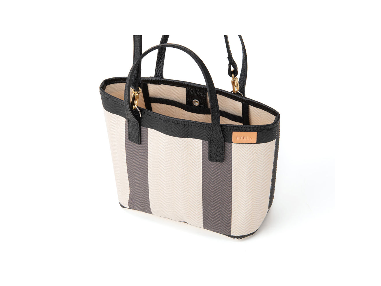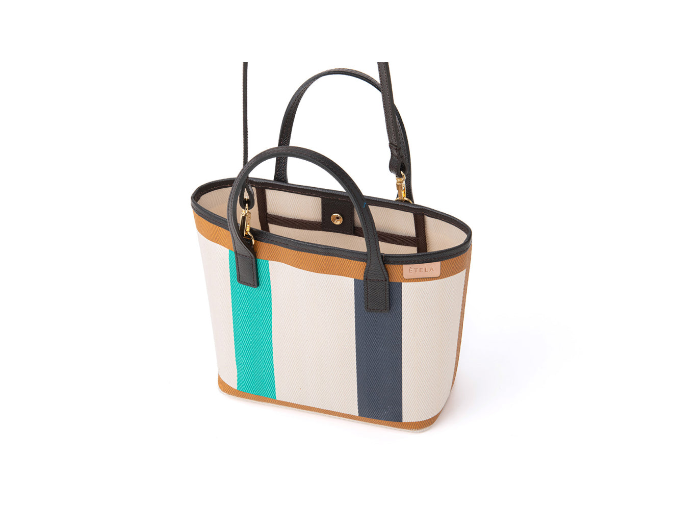 キャンバス内側にはコーティングを施しているため汚れにくく普段使いしやすい配慮も。手持ちだけでなくショルダーストラップにより肩掛けも可能。