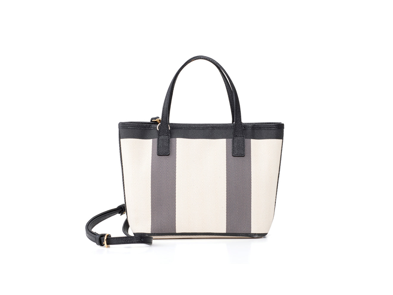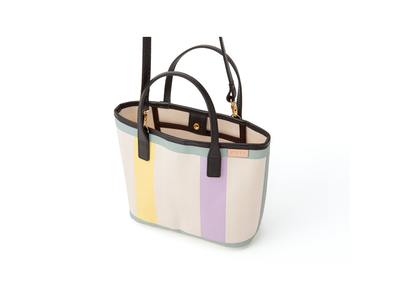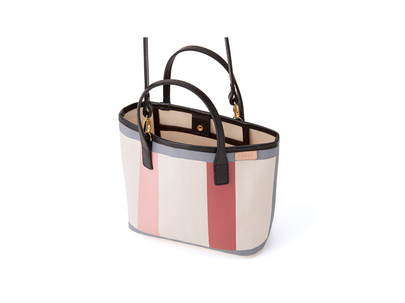 キャンバス内側にはコーティングを施しているため汚れにくく普段使いしやすい配慮も。手持ちだけでなくショルダーストラップにより肩掛けも可能。