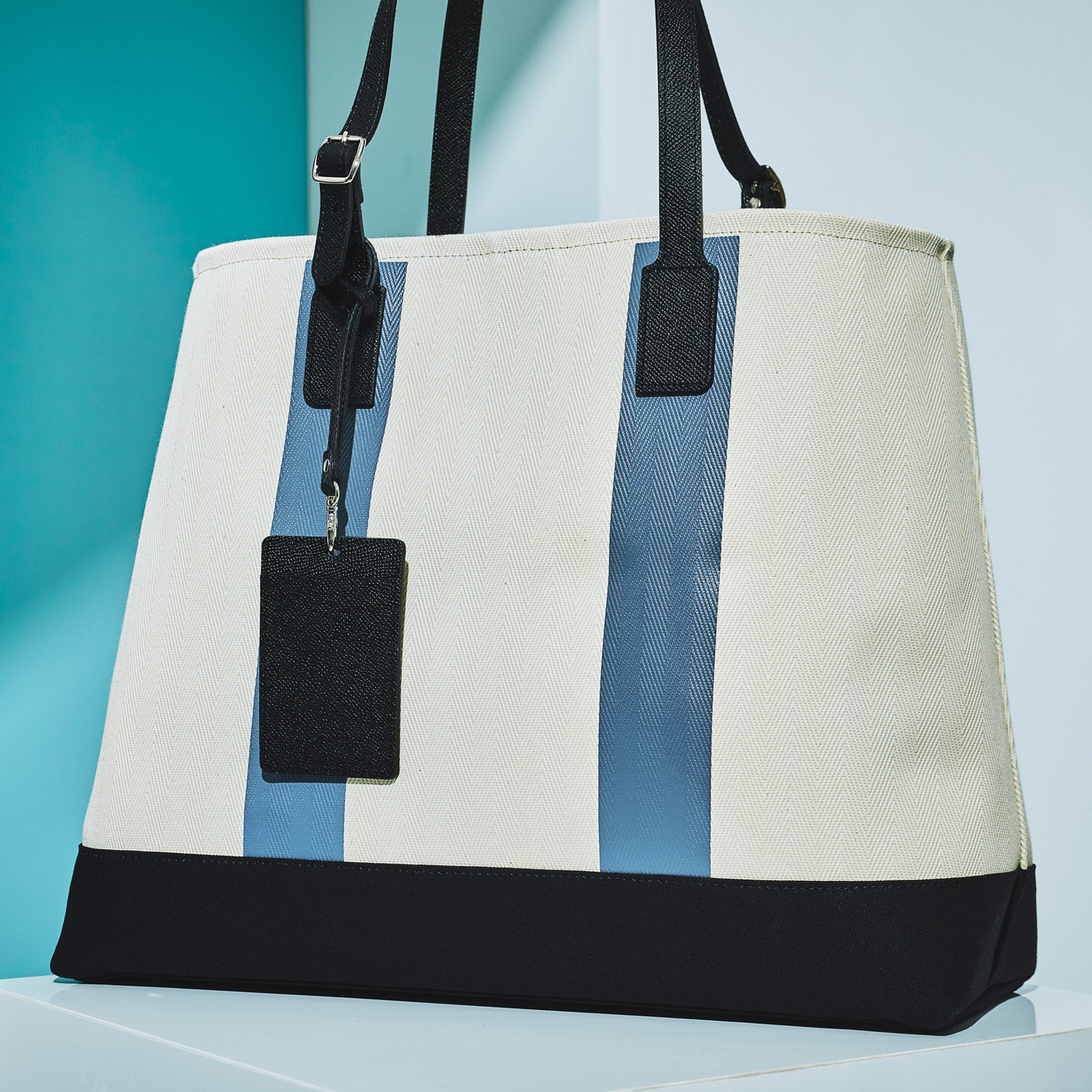 Ex large tote (two line print) - Off-white×Blue (two line)