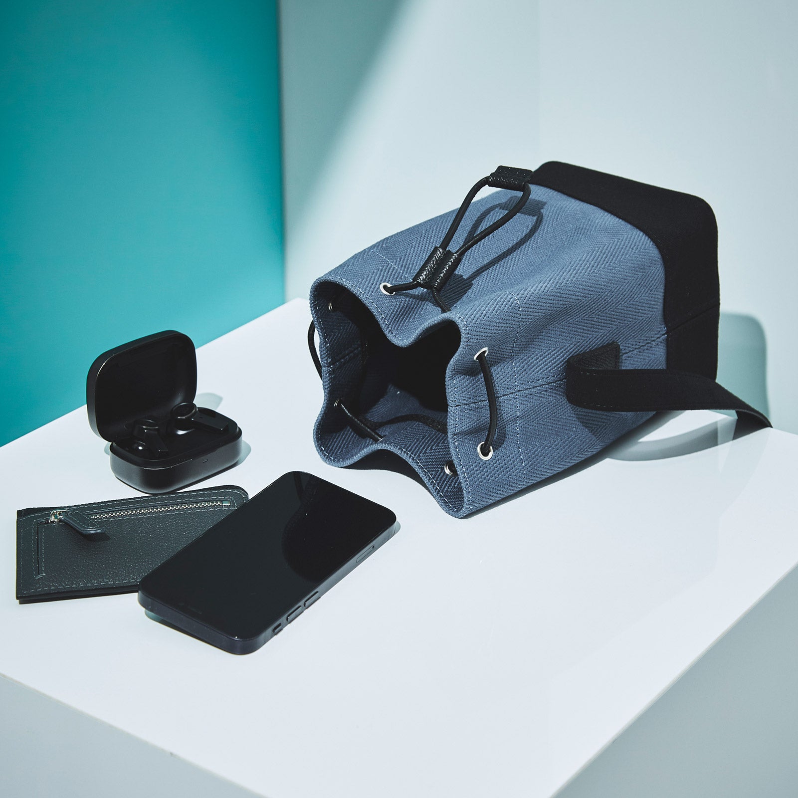 生地のベースには、130年の歴史を持つ伝統的なシャトル織機によっ織り上げられた精緻なヘリンボーンを使用しています。さらに、生地にハリを持たせる加工により、通常のキャンバス商材では出せないクリーンな見た目を表現。