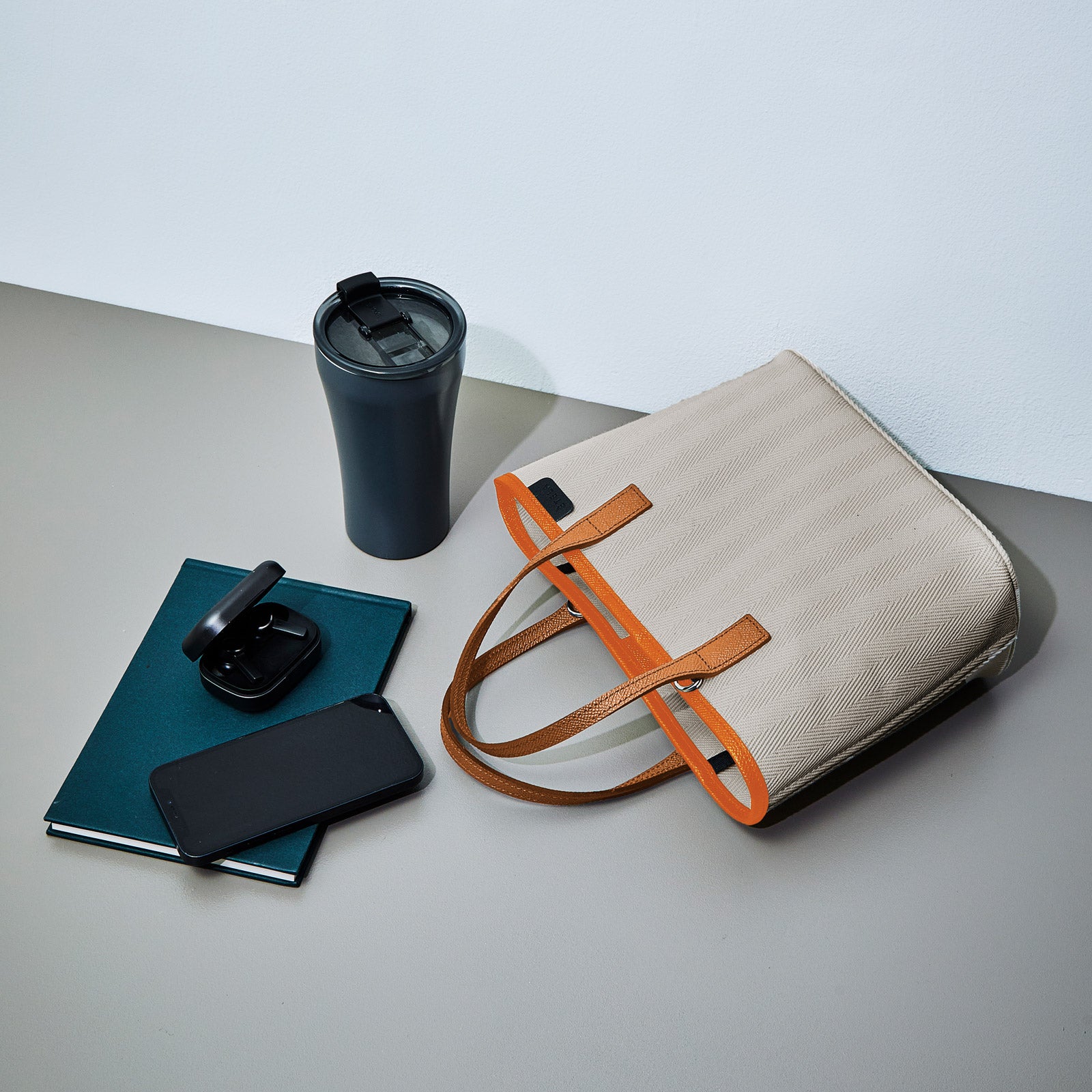 Small tote bag - GREIGE×ORANGE/CAMEL